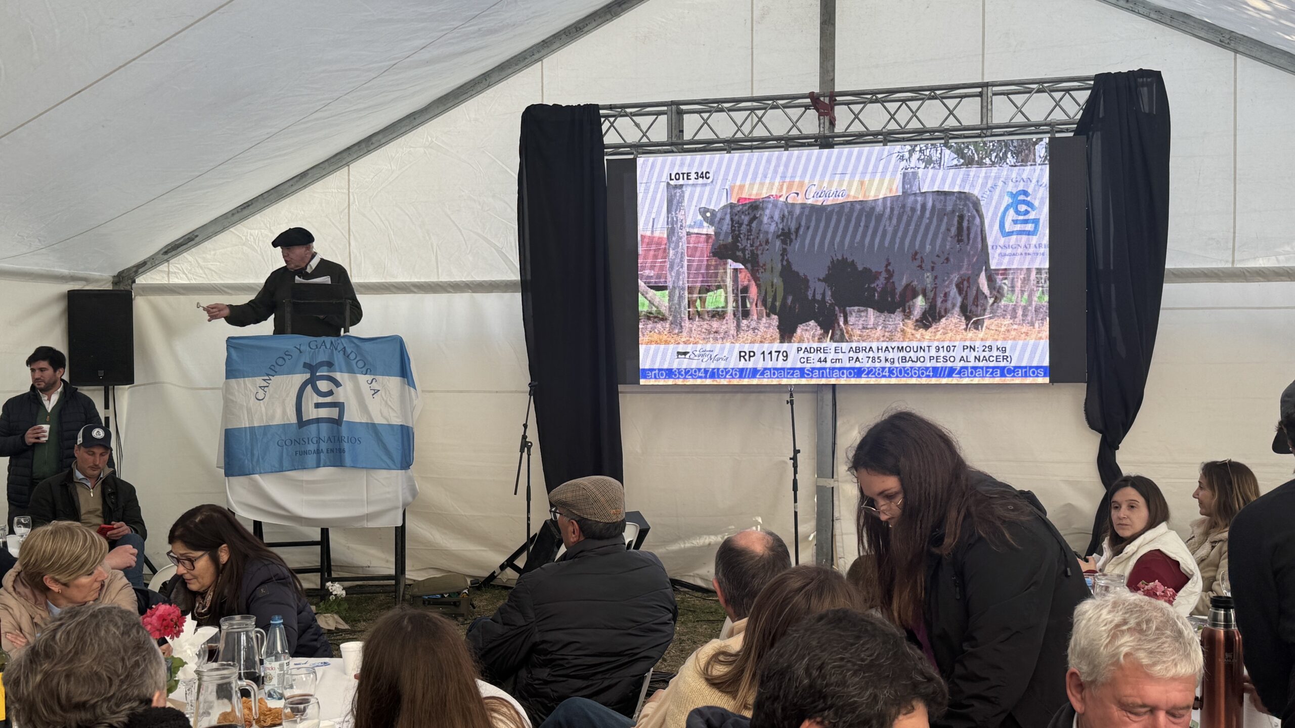 Y con los corrales repletos de vacas y toros, con los interesados observando, eligiendo y anotando; tras el almuerzo en la carpa arrancó la subasta en la pantalla. Así fue que tras los agradecimientos de Oscar Subarroca de Campos y Ganados arrancó la venta.