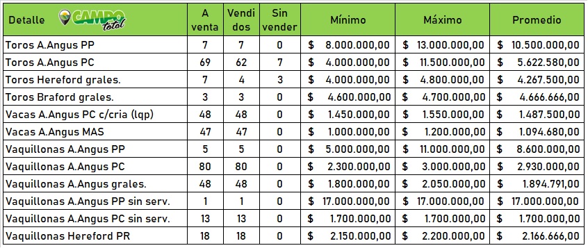 Con las vaquillonas PP arrancó la subasta y allí una abierta llegó a los 17 millones de pesos. Con todo colocado se pasó a las controladas, paridas y preñadas; realmente una excelente venta donde las pujas, los teléfonos y las manos levantadas fueron una constante.