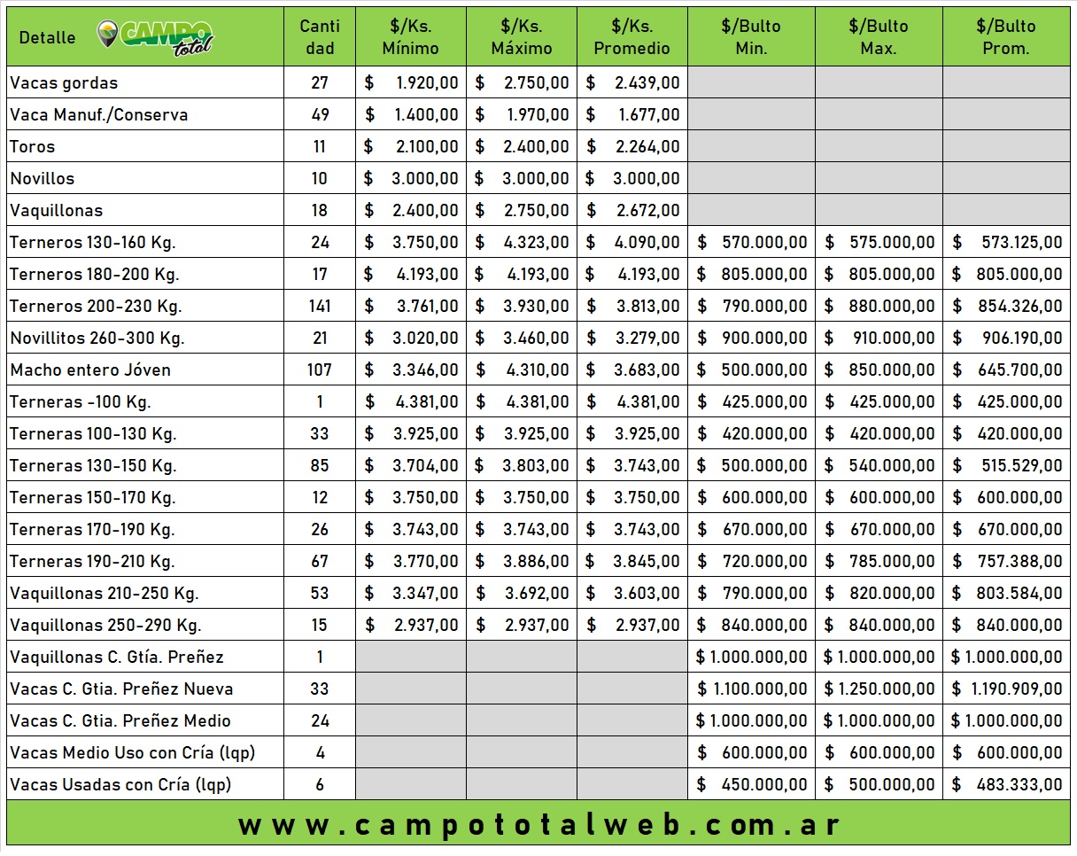 Casi 800 animales para la venta mensual de Ferias Rauch en Las Flores. Los detalles de la subasta.
