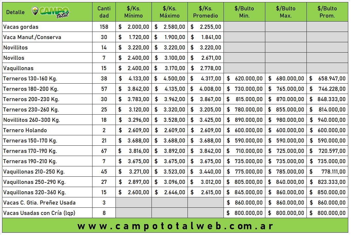 Lanusse Santillán junto a Mancinelli Haciendas concretaron una buena venta hoy en la Asociación Rural del distrito.