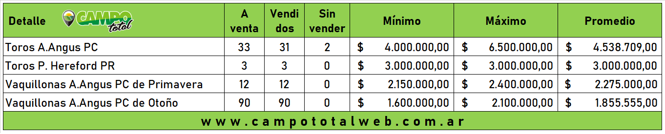 El Remate se dio en forma satisfactoria con promedios buenos ya que las manos estuvieron tanto para los Toros como para los vientres.
