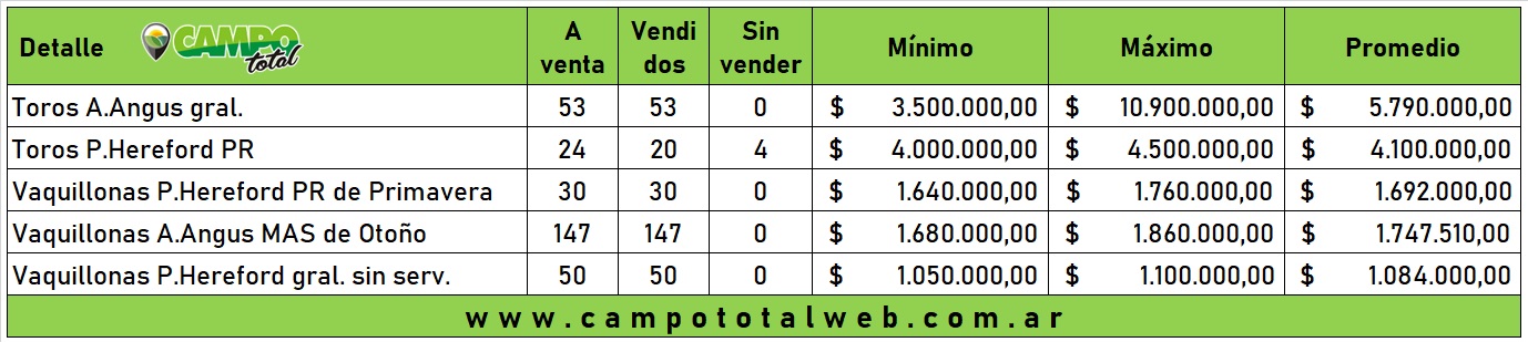 Buenos lotes de Angus y Hereford poblaron los corrales para una subasta que tuvo el martillo de Raúl Castel para la firma A.J. Mendizábal de la mano del local Celestino Horacio «Pancho» Escruela.