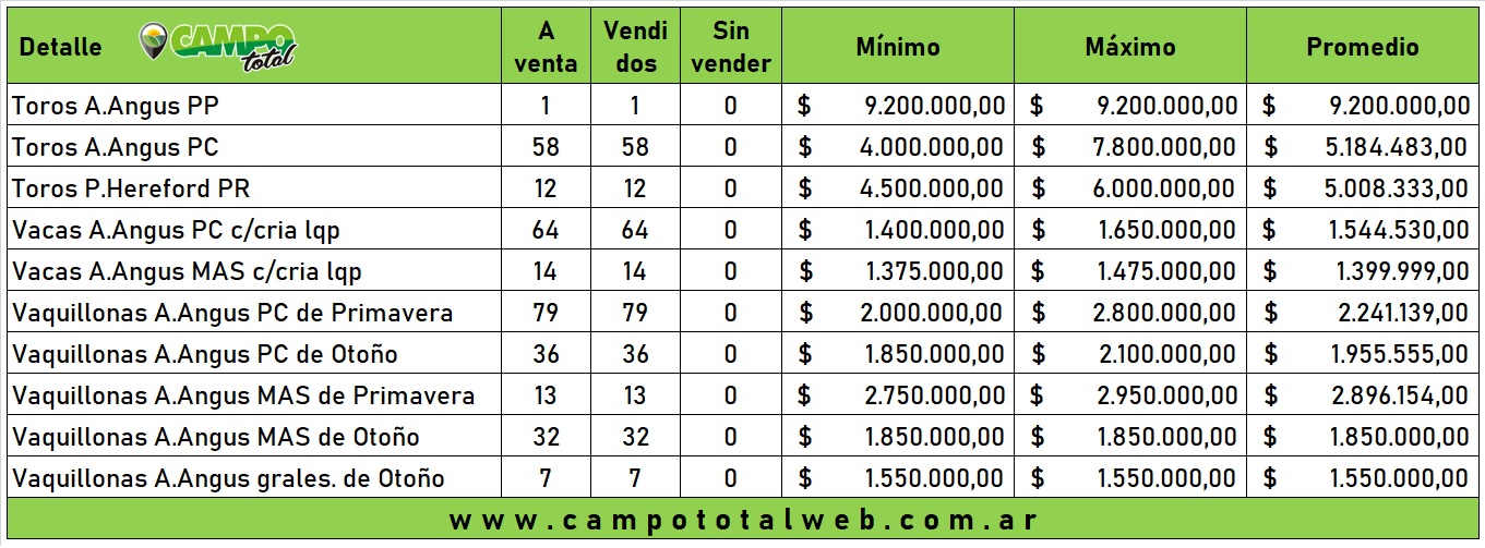 Por todo lo dicho más allá de que los primeros dos toros, tal vez tardaron un segundo más en encontrar sus tarifas, a partir de ahí todo fue manos, martillos, mucha elección puntual, buenos promedios y agilidad absoluta, para los Puros Controlados de El Pegual, intercalando por los siempre muy buscados, Pampas de Los Cedros, y los PC de El Puesto de Bracco.