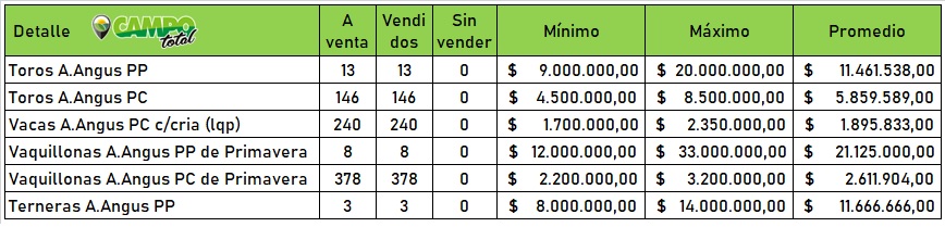 Un gran trabajo de Sáenz Valiente, Bullrich y Cía. con la dupla habitual y las nuevas generaciones que empujan fuerte, le dieron mucha agilidad al martillo para rápidamente colocar los casi 800 reproductores a venta con gran promedio.