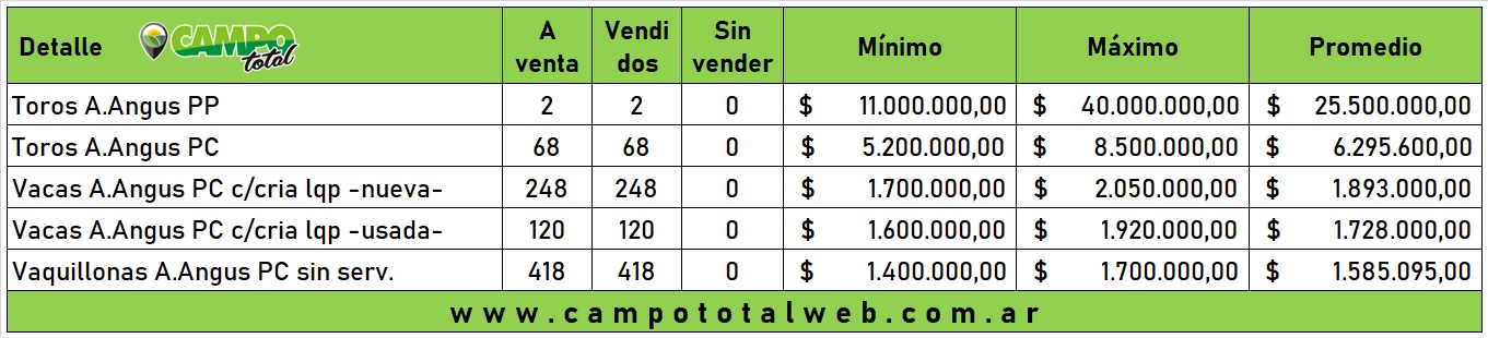 De entrada, con las vacas paridas arrancó la función dejando muchísimo interés, pujas, manos, teléfonos y representantes a pleno distribuyendo tremendas madres con sus terneros, ya sean las más nuevas o las adultas, todo fue valorado en gran forma.