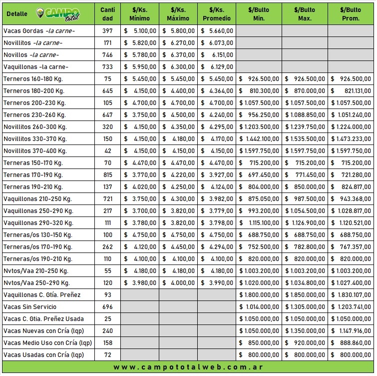 Por la mañana muy firme el FaenAR TV que tuvo volúmen y picos para novillos de 6.370 $ la carne a levantar del campo. Similar valor fue el alcanzado por novillitos y vaquillonas, en tanto las vacas alcanzaron los 5.800 pesos.