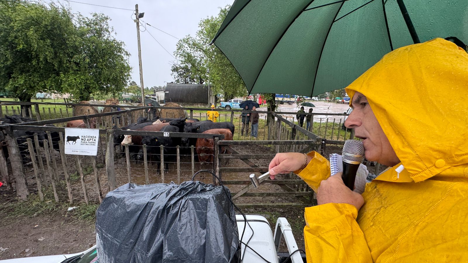 (TRES ARROYOS) Y fue un martes a puro paraguas, capa y botas de goma. Es que tal como estaba previsto, para la hora del remate volvió a llover por la ciudad, ocurre que con toda la hacienda ya encerrada en la feria la subasta debía concretarse.
