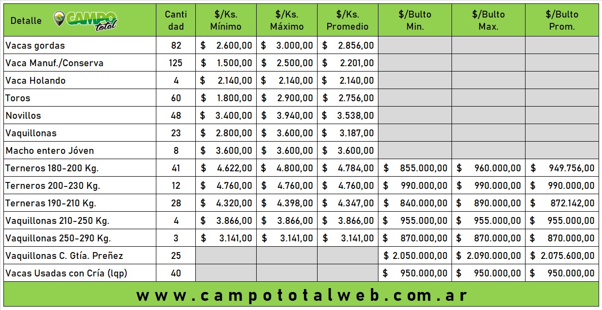 Buenos corrales de toros que también pisaron los 3.000 de máximo con inclusive algunos no China que estuvieron cerca y junto a unos MEJ destacados.