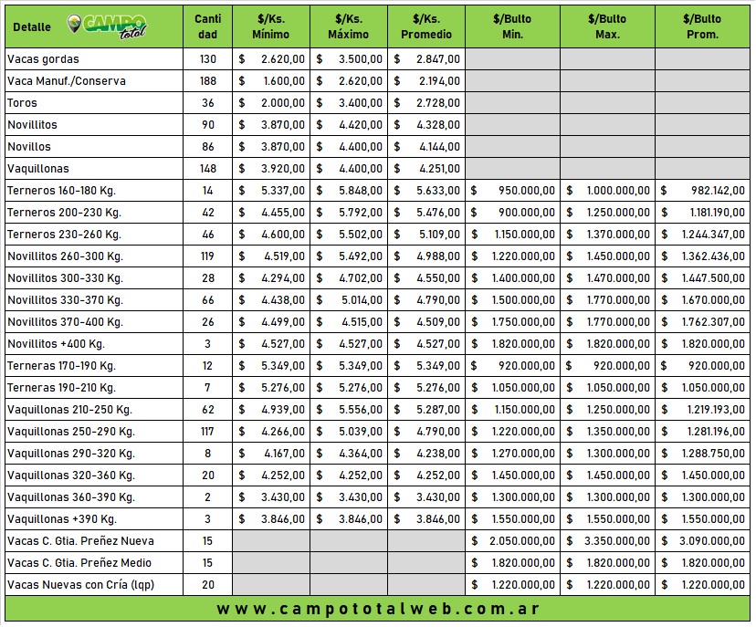 Categorías: Gordo – Invernada – Cría