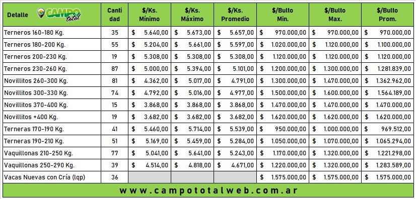 Como complemento, unas muy buenas vacas paridas y definidas (de buena calidad y ternero) alcanzaron 1.575.000 pesos lo que pisa.
