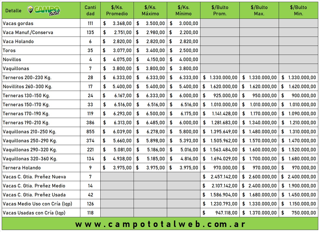 Categorías: Invernada (Especial hembras) con faena y cría
