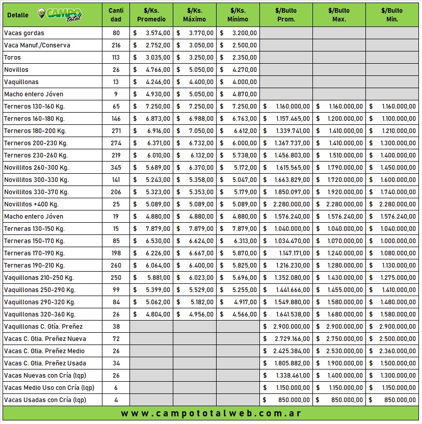 Plazo: 30 – 45 – 60 – 90 (vientres) días