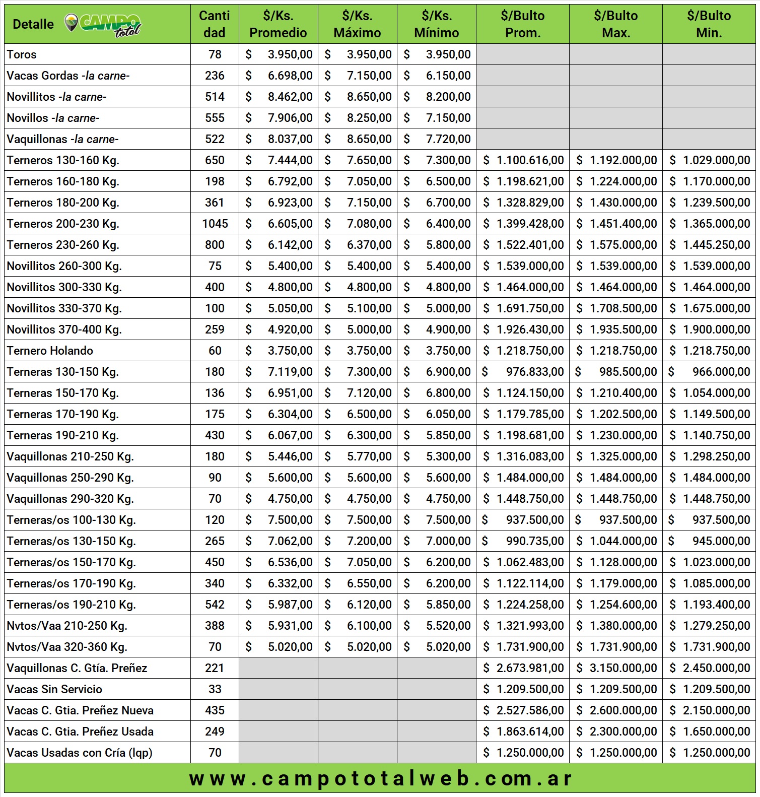 Categorías: Faena – Invernada – Cría